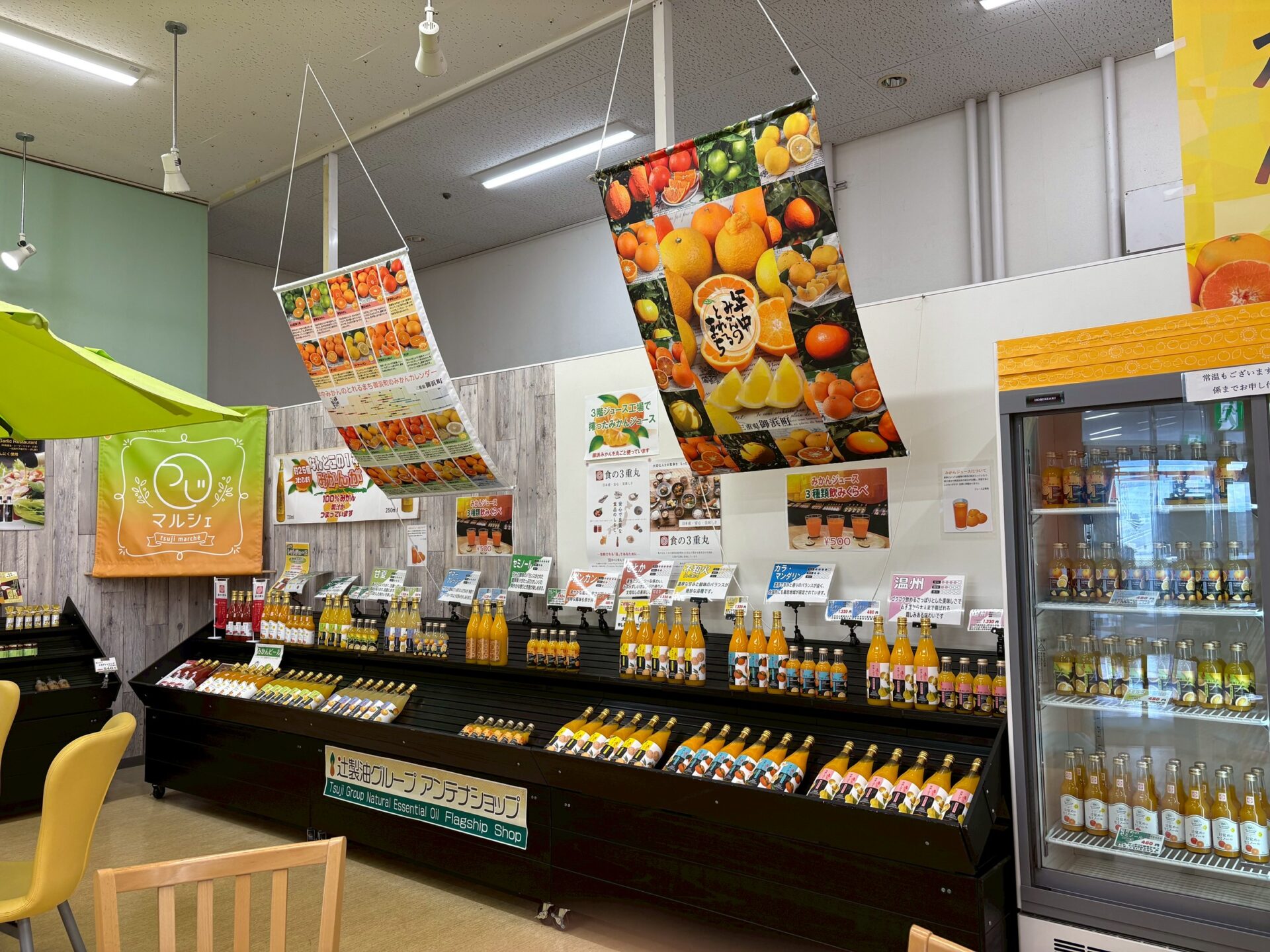 みかんジュースは、施設内の工場で搾ったフレッシュな味わいを楽しめます。房付きトマトジュースやフレーバーオイル、ドレッシングも人気です。 カフェでは、つじドックやソフトクリーム、みかんジュースの飲み比べなど、お買物や旅のひと休みにぴったりのメニューが楽しめます。 地方発送も可能なので、お土産にもおすすめです。