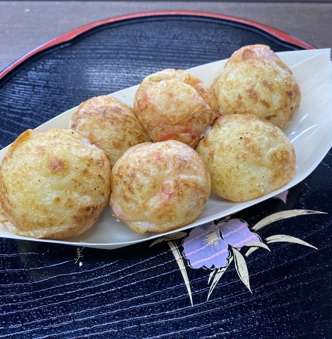 国産小麦粉と天然だしを使用し、小麦の繊維を壊さないよう銅製のたこ焼き器で丁寧に焼き上げることで、外は香ばしく中はとろりとした絶妙な食感に仕上がります。 焼き上がりまで約15分。お待ちいただく価値のある、焼きたての美味しさをぜひご賞味ください。予約も可能です。